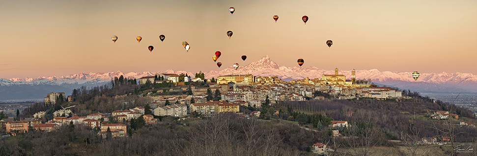 Panoramica di Mondovì Piazza notturna su Canvass 100% cotone mis. 30×80